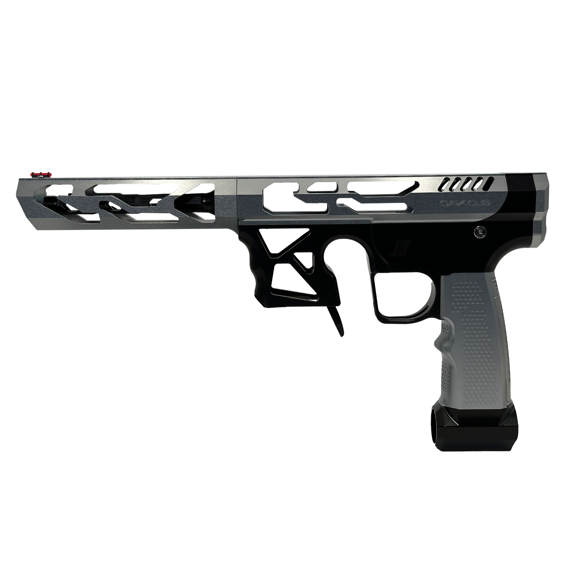 The Oracle Rogue 9 brings a new level of competition focus to the Oracle platform. Based on an ARP9. Tournament-tested during the NSL Cup series, the Rogue 9 blends proven Oracle modularity with purpose-built competition features: a paddle magazine release and an innovative gripwell that doubles as a natural front grip for a confident, stable hold.